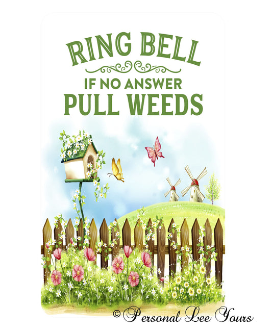 Wreath Signs * Ring Bell, If No Answer Pull Weeds * 3 Sizes * Lightweight Metal
