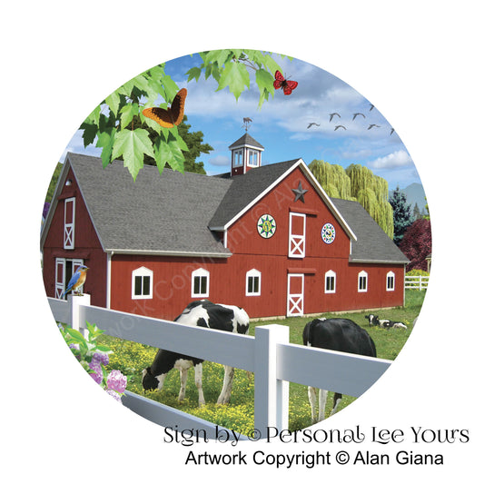 Alan Giana Exclusive Sign * Pleasant Pasture * 8 inch Round * Lightweight Metal
