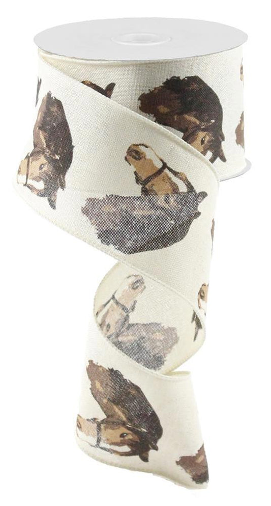 Wired Ribbon * Horse * Cream and Brown * 2.5" x 10 Yards Canvas * RG01655C2