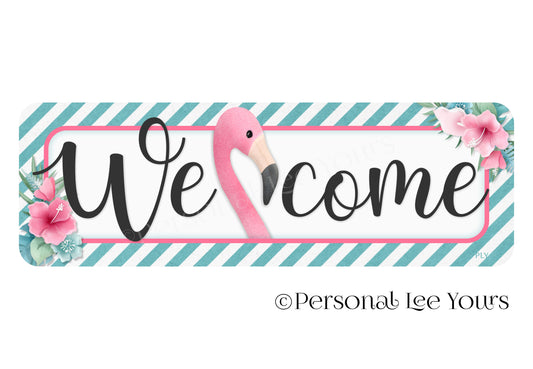 Wreath Sign * Banner * Pink Flamingo Welcome * 4" x 12" * Lightweight Metal