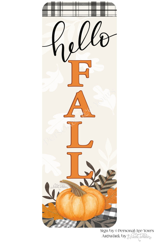 Nicole Tamarin Exclusive Sign * Plaid Fall, Hello Fall Vertical Banner * Lightweight Metal