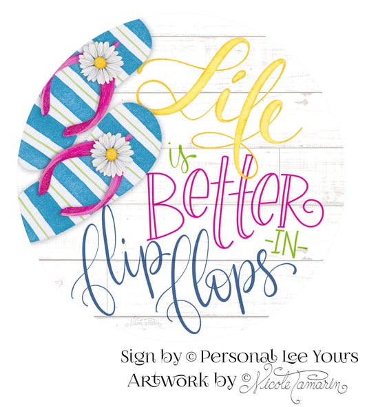 Nicole Tamarin Exclusive Sign * Life Is Better In Flip Flops * Round * Lightweight Metal