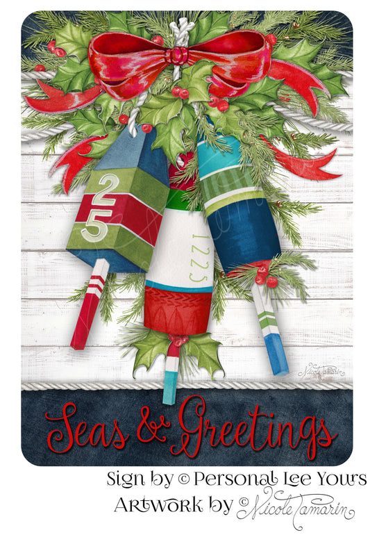 Nicole Tamarin Exclusive Sign * Christmas Buoys * Seas & Greetings * 2 Sizes * Lightweight Metal