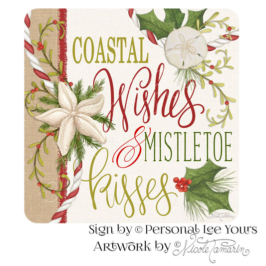 Nicole Tamarin Exclusive Sign * Coastal Wishes & Mistletoe Kisses * 3 Sizes * Lightweight Metal