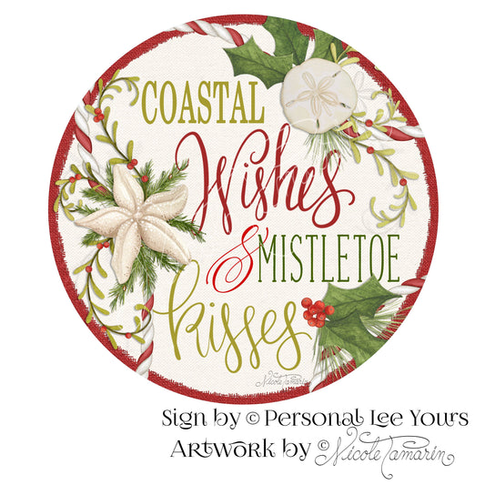 Nicole Tamarin Exclusive Sign * Coastal Wishes & Mistletoe Kisses * Round * Lightweight Metal