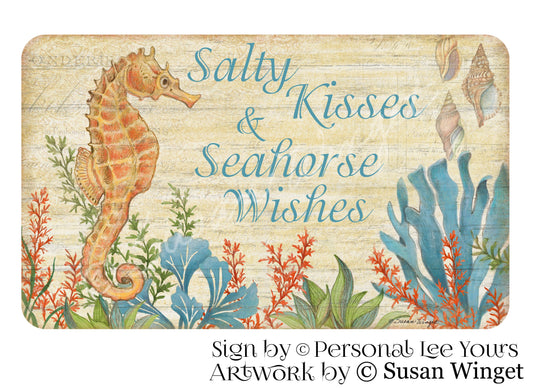 Susan Winget Exclusive Sign * Salty Kisses & Seahorse Wishes * 3 Sizes * Lightweight Metal