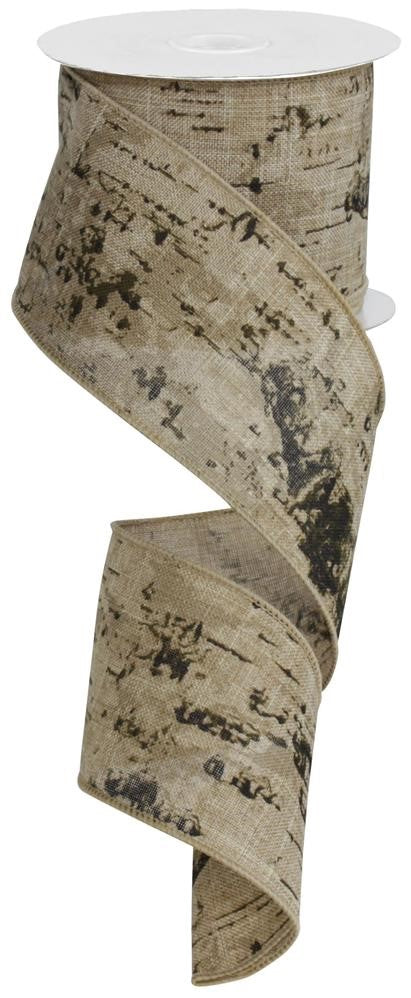 Wired Ribbon * Birch Bark * Multi-Beige, Lt. Grey and Black Canvas * 2.5" x 10 Yards * RG1942WW