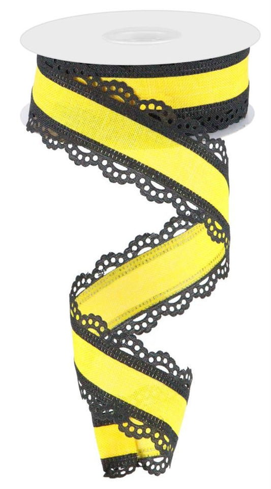 Wired Ribbon * Scalloped Edge * Sun Yellow and Black Canvas * 1.5" x 10 Yards * RGA154157