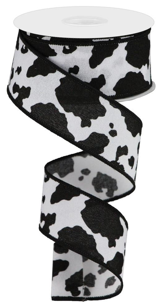 Wired Ribbon * Cow Print * Black and White Canvas * 1.5" x 10 Yards * RGB137602
