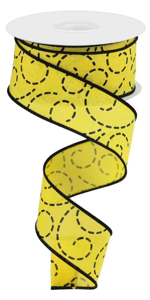 Wired Ribbon * Dashed Swirls * Yellow and Black * 1.5" x 10 Yards * RGC127429 * Canvas