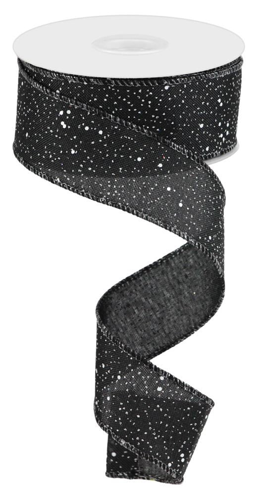 Wired Ribbon * Glitter on Fabric * Black Canvas * 5/8" x 10 Yards * RJ203002