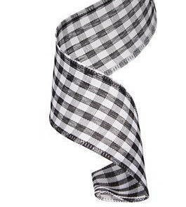 Wired Ribbon * Black and White Gingham Check * Farmhouse * 1.5" x 10 Yards * RG01048L6 * Canvas