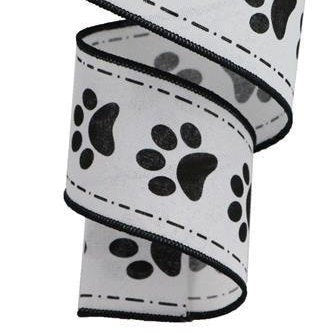 Wired Ribbon * Paw Prints on Canvas * Black and White * 2.5" x 10 Yards * RGA132227