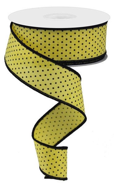 Wired Ribbon * Raised Swiss Dots * Sun Yellow and Black Canvas * 1.5" x 10 Yards * RG01685N6