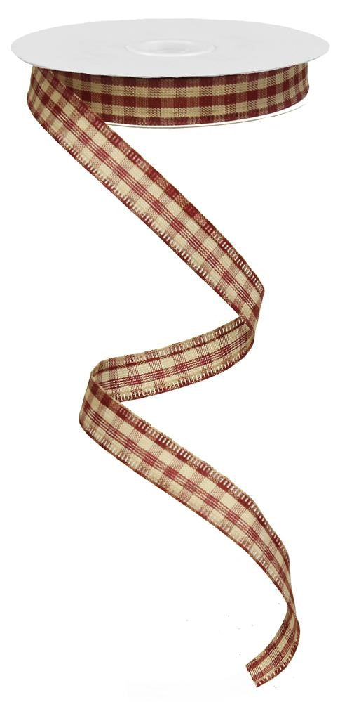 Wired Ribbon * Primitive Gingham Check * Red and Tan Canvas * 5/8" x 10 Yards * RG01395K9