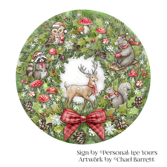 Chad Barrett Exclusive Sign * Woodland Wreath * Round * Lightweight Metal