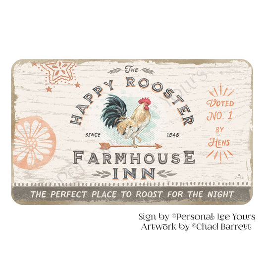 Chad Barrett Exclusive Sign * Happy Rooster Farmhouse Inn * Horizontal * 4 Sizes * Lightweight Metal