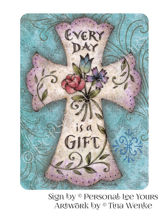 Tina Wenke Exclusive Sign * Every Day Is A Gift Cross * 2 Sizes * Lightweight Metal