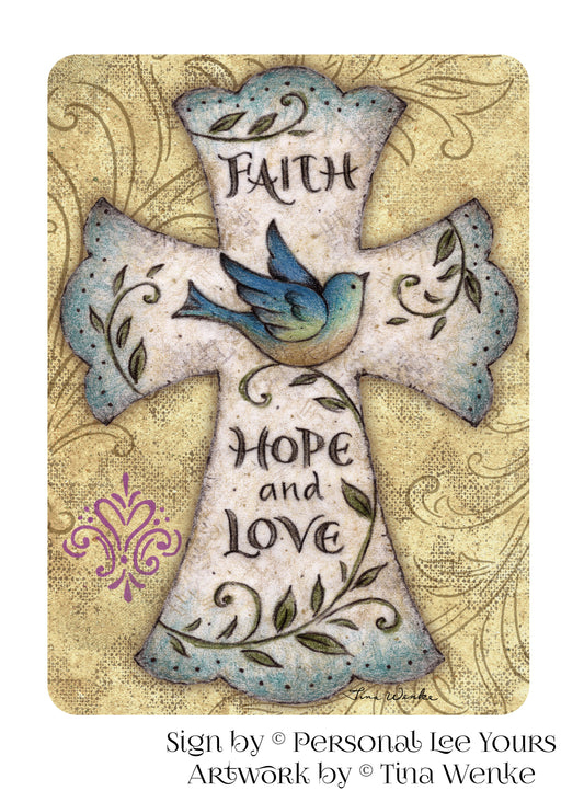 Tina Wenke Exclusive Sign * Faith Hope Love Cross * 2 Sizes * Lightweight Metal