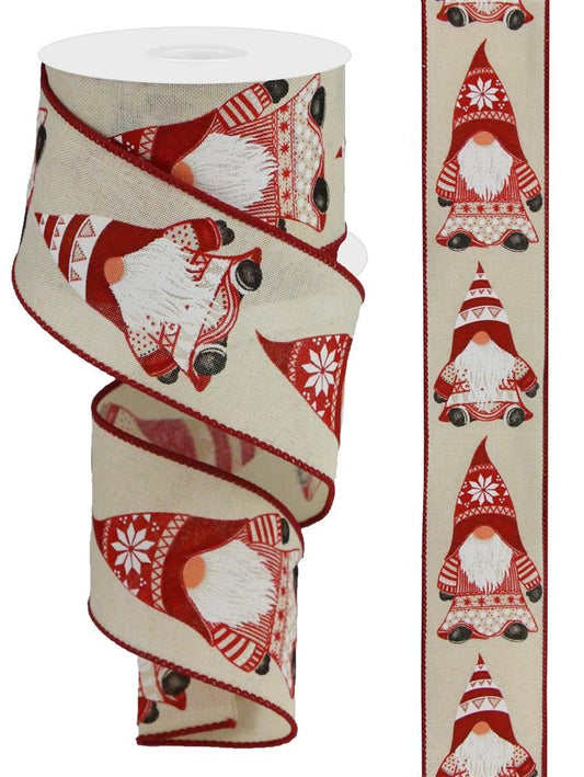 Wired Ribbon * Nordic Gnomes * Cream, Red, White and Black * 2.5" x 10 Yards Canvas * RGC1163C2