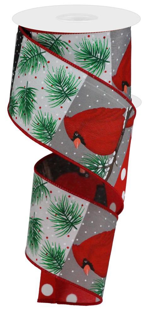 Wired Ribbon * Cardinal Blocks * White, Red, Black and Green Canvas * 2.5" x 10 Yards * RGB1329