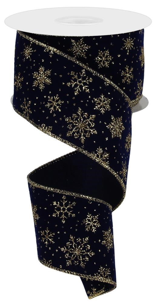 Wired Ribbon * Glitter Snowflakes on Velvet * Navy/Gold * 2.5" x 10 Yards * Canvas * RGE1138WA