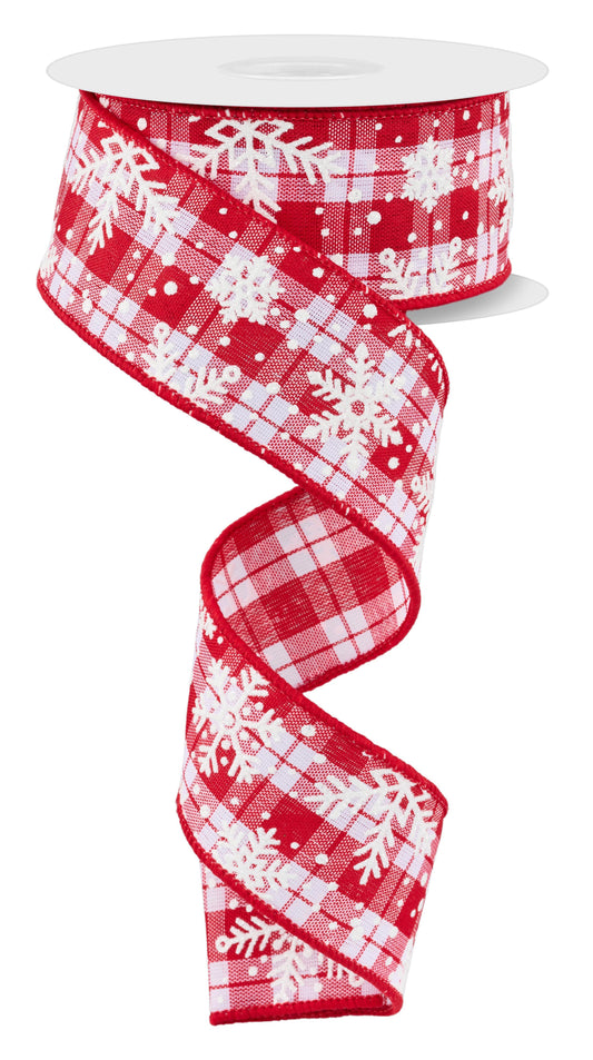 Wired Ribbon * Multi Snowflake on Woven * Red/White * 1.5" x 10 Yards * Canvas * RGF101024