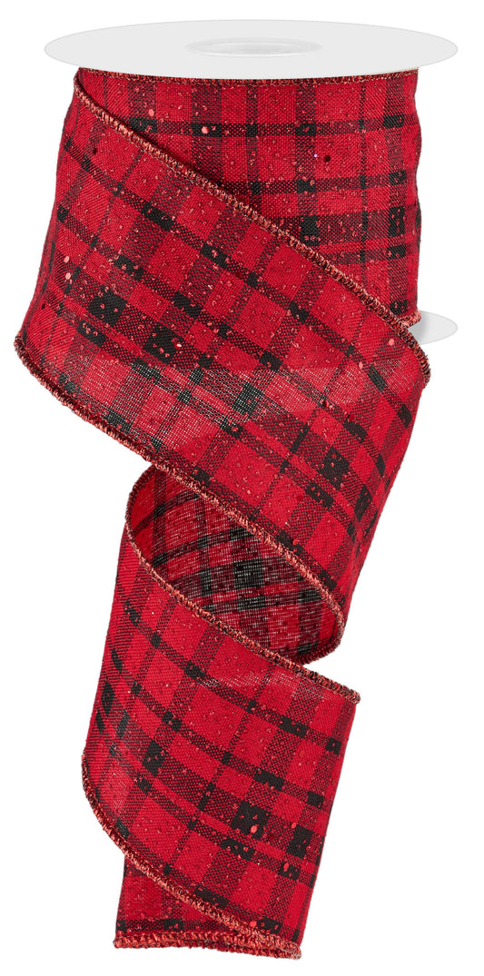 Wired Ribbon * Hex Glitter on Woven * Red/Black* 2.5" x 10 Yards * Canvas * RGF1051CM