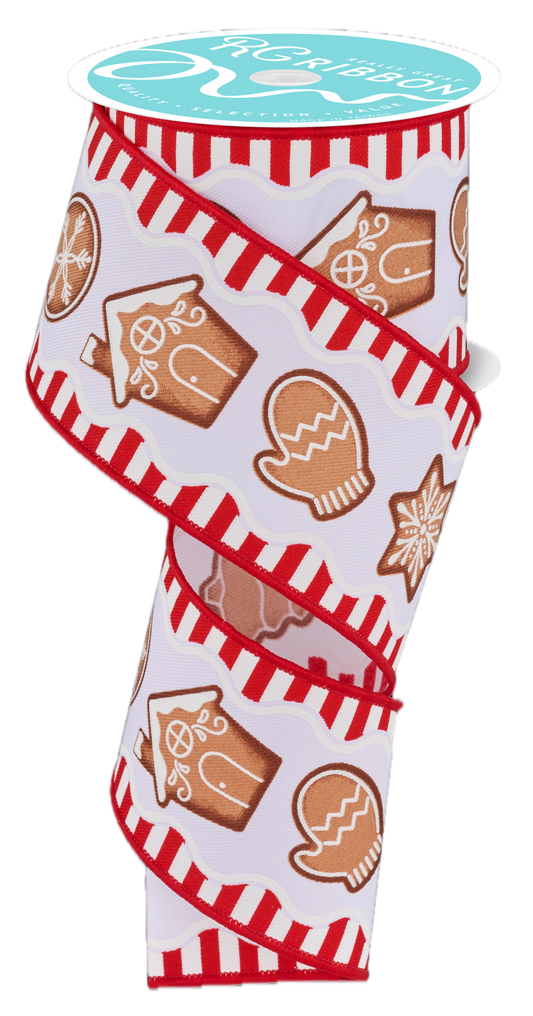 Wired Ribbon * Gingerbread Cookies * White/Multi* 2.5" x 10 Yards * Canvas * RGF119327