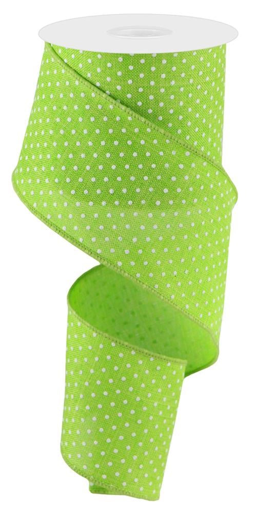 Wired Ribbon * Raised Swiss Dots * Lime and White Canvas * 2.5" x 10 Yards * RG0165233