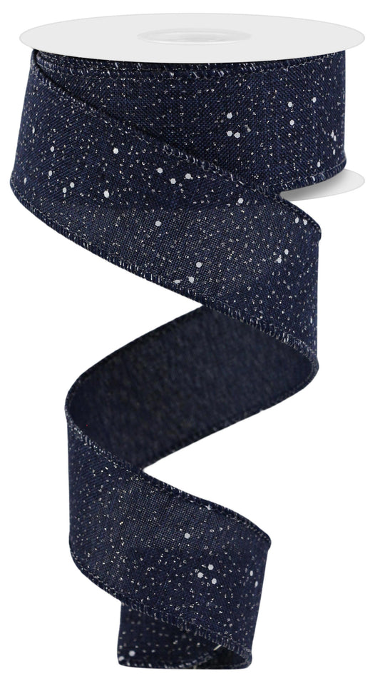 Wired Ribbon * Multi Snow Glitter * Navy and White Canvas * 1.5" x 10 Yards * RGC129119