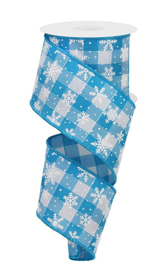 Wired Ribbon * Snowflakes On Check * Blue and White Canvas * 2.5" x 10 Yards * RGE1322