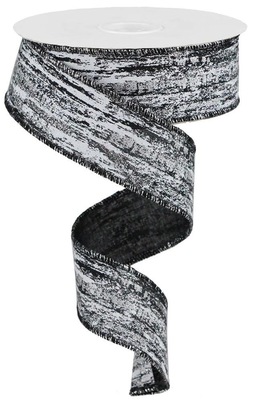 Wired Ribbon * Glitter Metallic Streaks * Black, White and Silver Canvas * 1.5" x 10 Yards Canvas * RGA191702