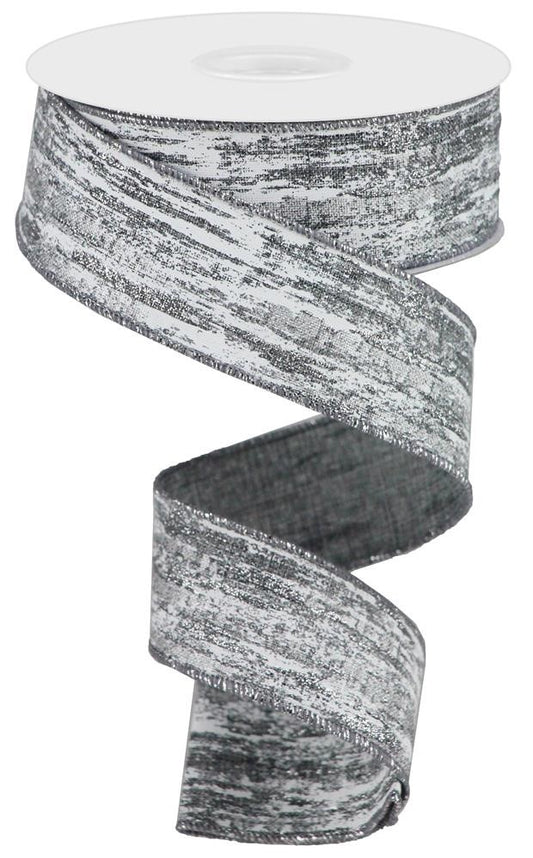 Wired Ribbon * Glitter Metallic Streaks * Grey, White and Silver Canvas * 1.5" x 10 Yards Canvas * RGA191710
