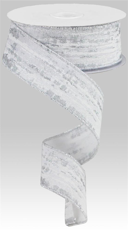 Wired Ribbon * Glitter Metallic Streaks * White/Silver Canvas * 1.5" x 10 Yards Canvas * RGA191727