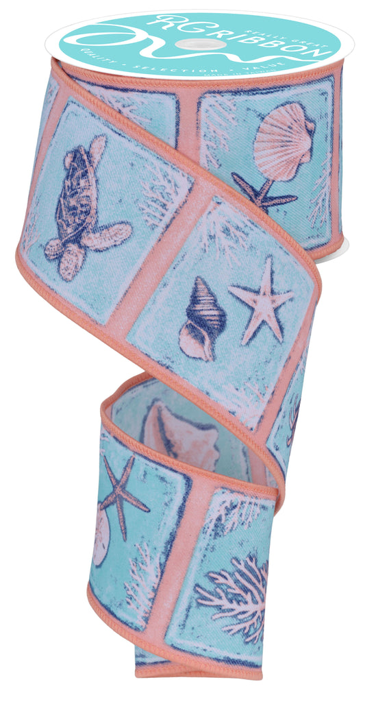 Wired Ribbon * Coastal Pattern * Blue, Coral, Cream, Brown and Lt Blue * 2.5" x 10 Yards * Canvas * RGF12523N
