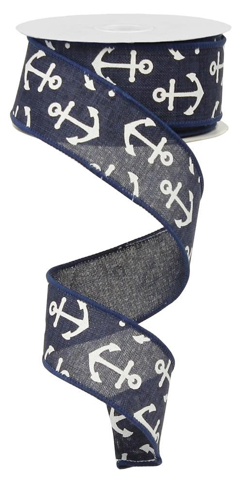 Wired Ribbon * Basic Anchor * Navy and White * Canvas* 1.5" x 10 Yards * RG0148819
