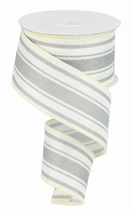 Wired Ribbon * Farmhouse Stripe * Ivory and Cool Grey * Canvas * 2.5" x 10 Yards * RG01912FJ