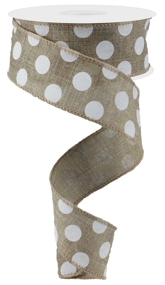 Wired Ribbon * Medium Polka Dot * Beige and White Canvas * 1.5" x 10 Yards * RG0120601