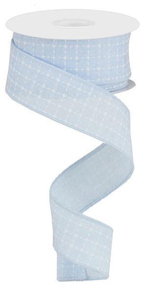 Wired Ribbon * Raised Stitched Squares * Baby Blue and White * 1.5 x 10 Yards * Canvas * RG0167714