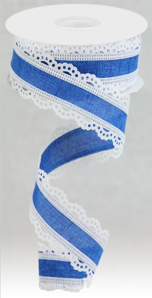 Wired Ribbon * Scalloped Edge * Royal Blue and White Canvas * 1.5" x 10 Yards * RGA1541WR