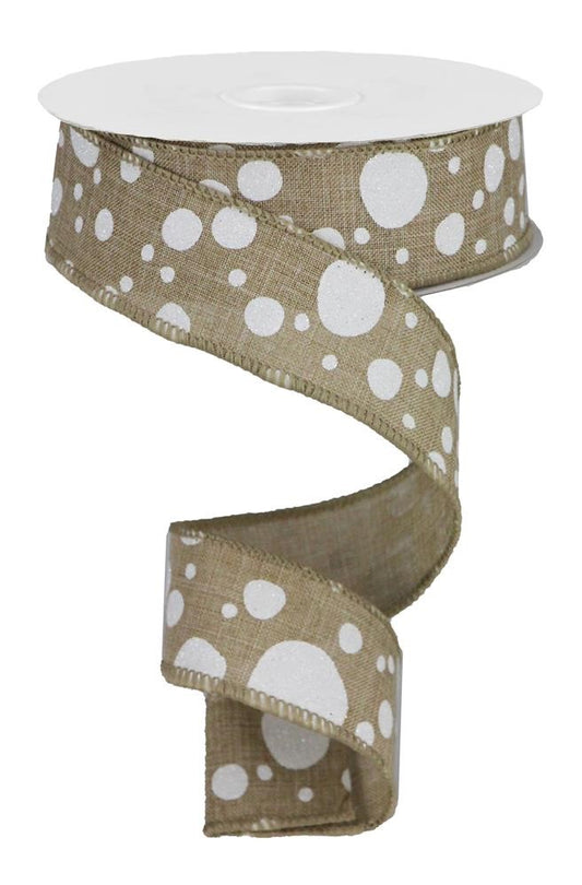 Wired Ribbon * Irregular Dots * Lt. Beige, White and Iridescent Glitter Canvas * 1.5" x 10 Yards * RGA166501