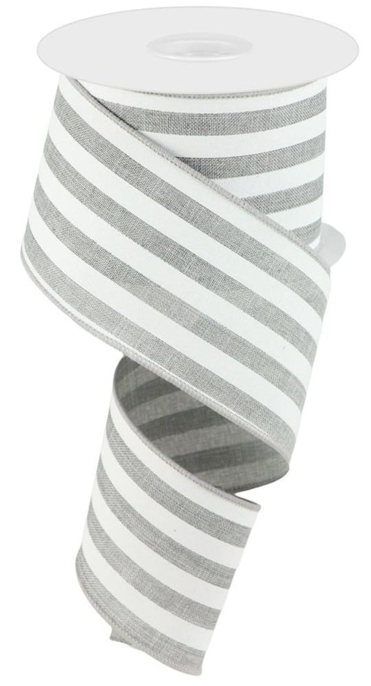 Wired Ribbon * Vertical Stripe * Lt. Grey and White Canvas * 2.5" x 10 Yards * RGC156310