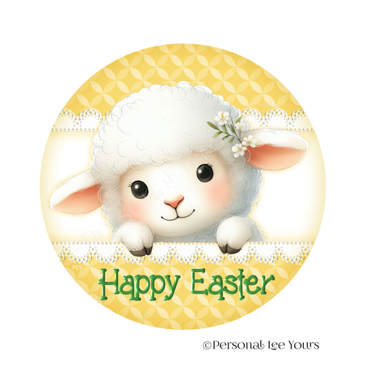 Wreath Sign * Happy Easter Peeking Lamb * Round * Lightweight Metal