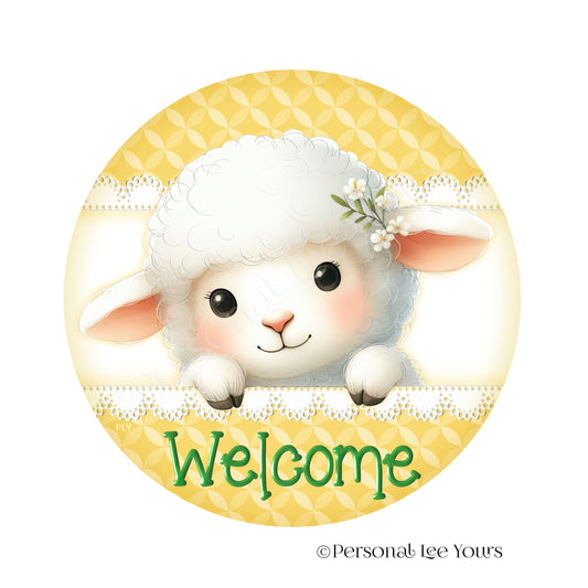 Wreath Sign * Welcome Peeking Lamb * Round * Lightweight Metal