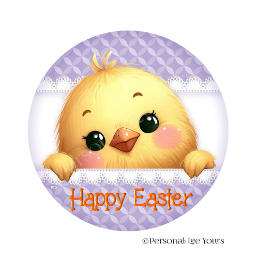 Wreath Sign * Happy Easter Peeking Chick * Round * Lightweight Metal