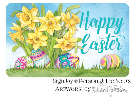 Nicole Tamarin Exclusive Sign * Happy Easter~ Daffodils and Easter Eggs * 3 Sizes * Lightweight Metal