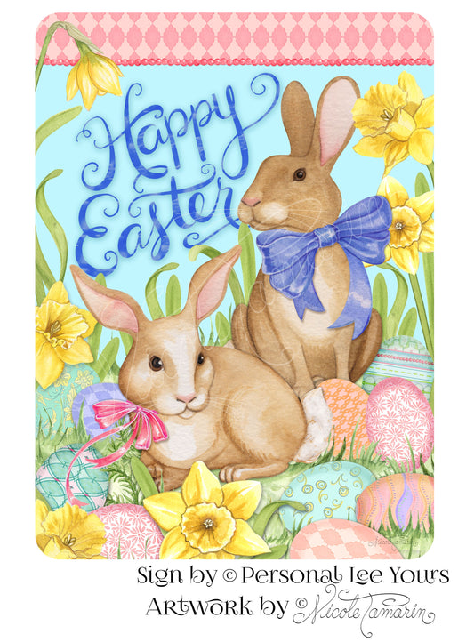 Nicole Tamarin Exclusive Sign * Happy Easter Bunnies * 2 Sizes * Lightweight Metal