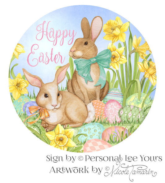 Nicole Tamarin Exclusive Sign * Happy Easter Bunnies * Round * Lightweight Metal