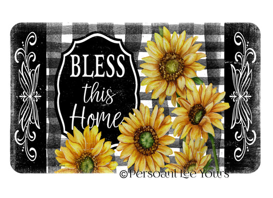 Wreath Sign * Bless This Home * Sunflowers On Teal * 3 Sizes * Lightweight Metal